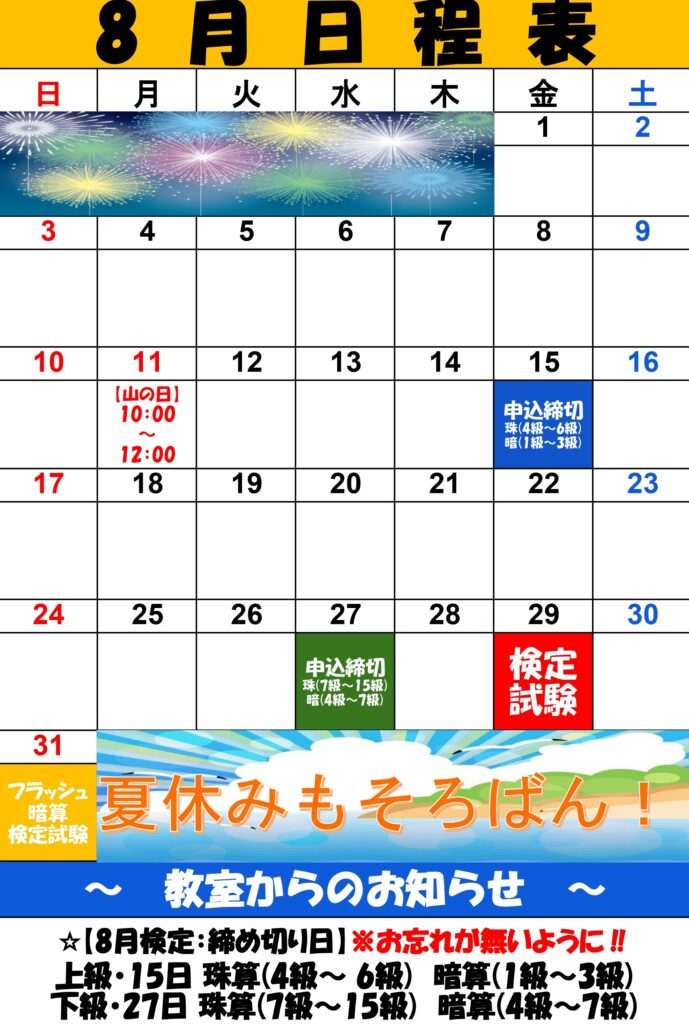【 令和7年8月日程表 】