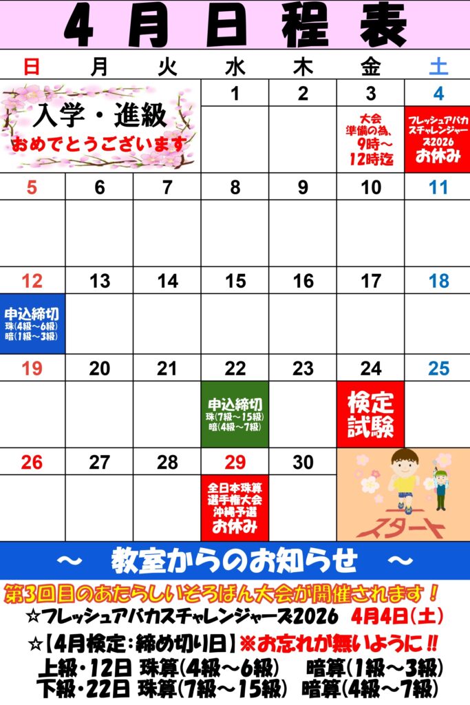 4月の日程表をUPしました!